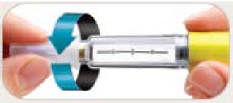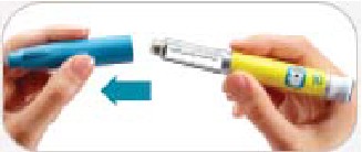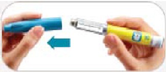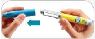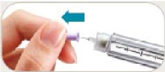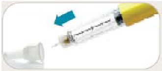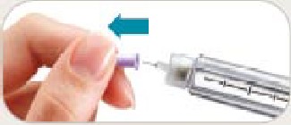 • Trek de buitenste naaldbescherming eraf. Gooi deze niet weg. De buitenste naaldbeschermer zal worden gebruikt als u de naald van de pen verwijderd na de injectie.