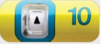 • Draai de doseerknop met de wijzers van de klok mee tot het niet verder kan en  in het doseervenster zichtbaar is. Zorg ervoor dat de 10 met de streep eronder zichtbaar is in het centrum van het doseervenster.