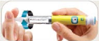 • Breng de naald in de huid met behulp van de door uw zorgverlener aanbevolen hygiënische injectietechniek.