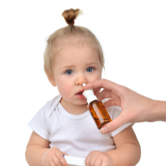 Er bestaan neusdruppels en neusspray speciaal voor kinderen. Deze mogen echter kortdurend (5 dagen) gebruikt worden om te beletten dat je het neusslijmvlies beschadigt. Indien je deze gebruikt spoel je best vooraf het neusje van je kind met fysiologisch serum. Kies een fysiologisch serum dat aangepast is aan de leeftijd van je kind.